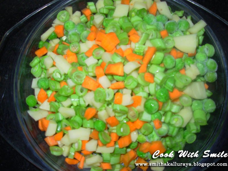 - Cut all veggies almost even size. So that all veggies cook evenly .